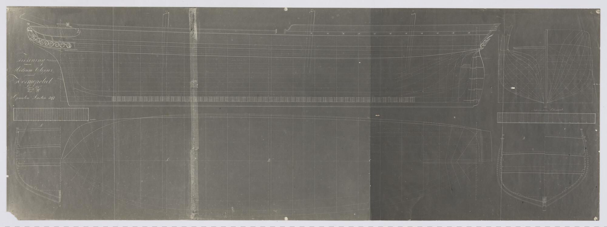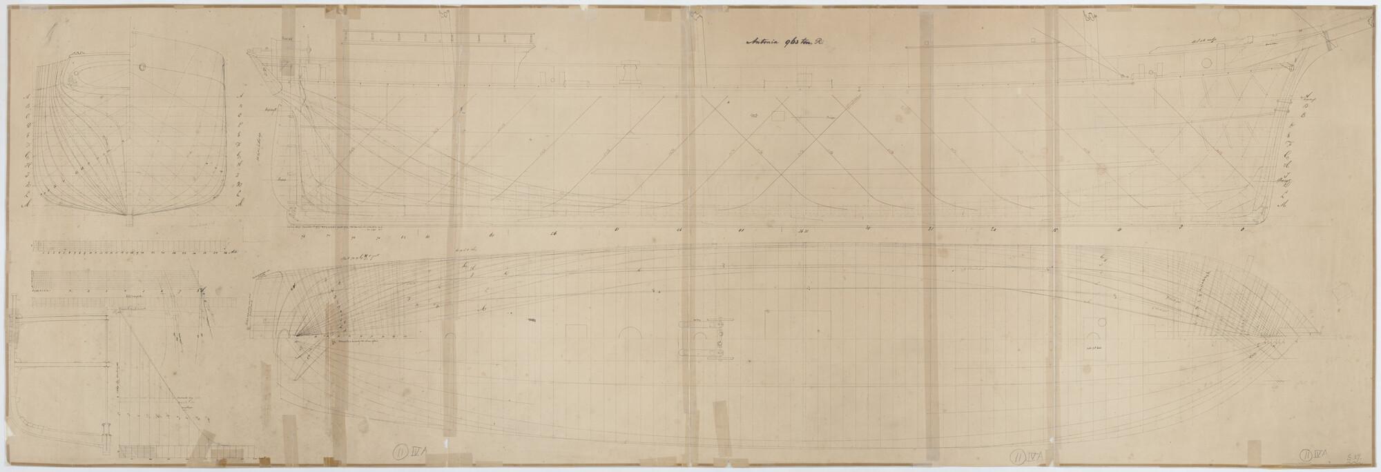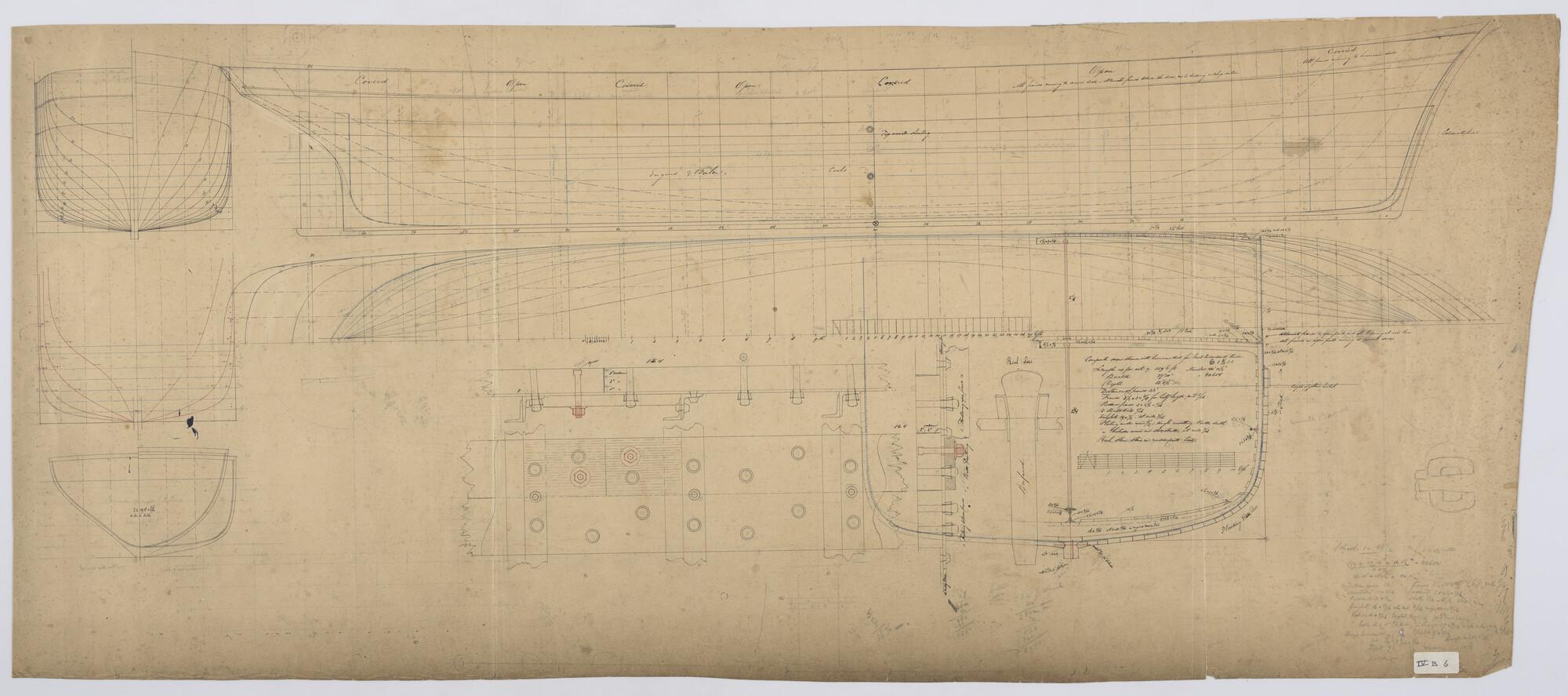 Lijnenplan van verticalen, schroefstoomschip 'Oberon'