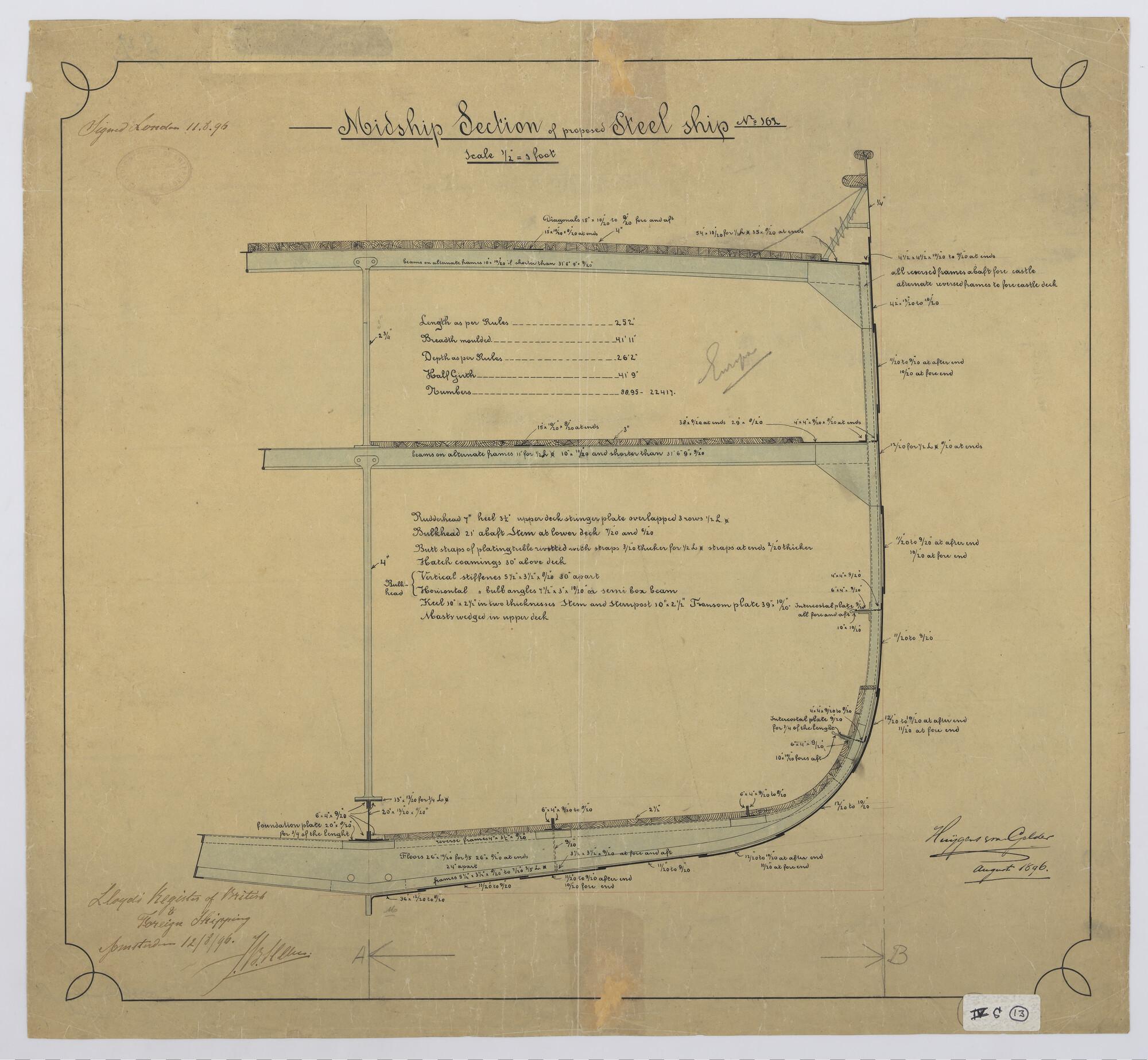 Lijnenplan van de schroefstoomschepen Ruys, Tegelber...