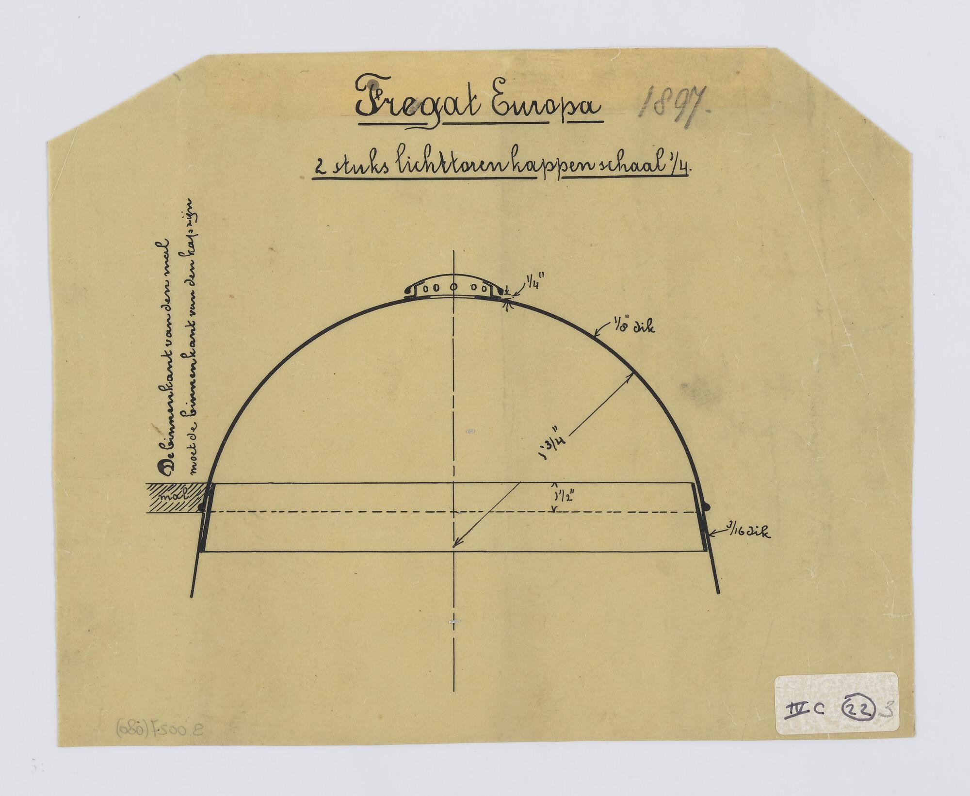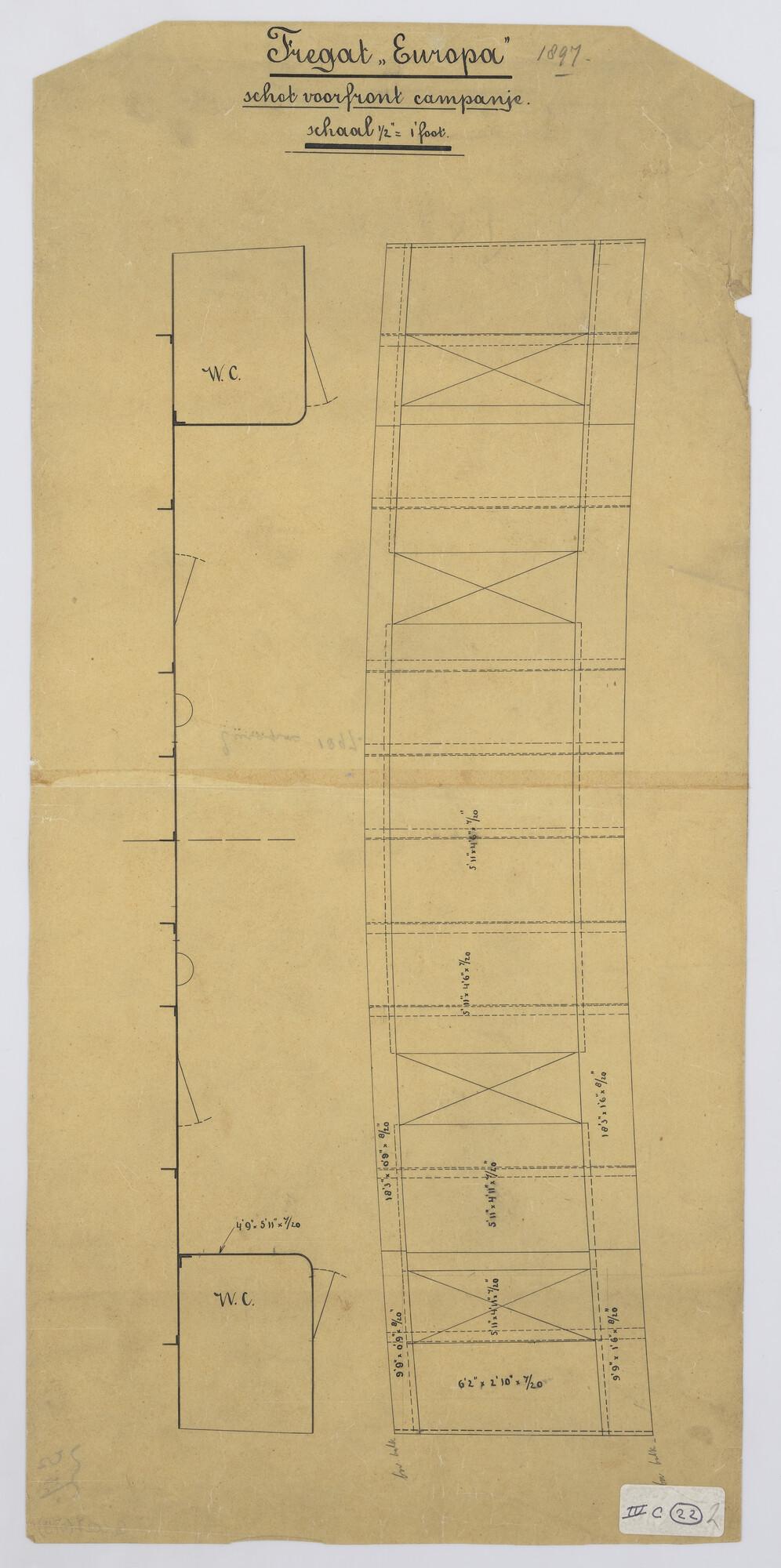 Verticale langsdoorsnede en bovenaanzicht van het fr...
