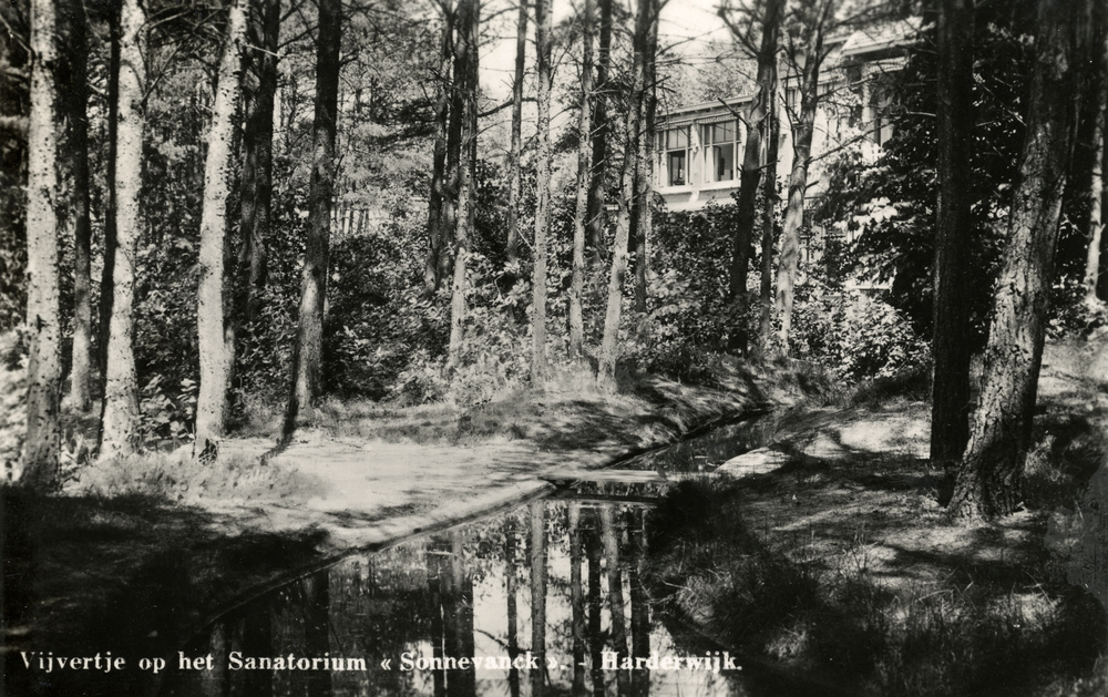 Prentbriefkaart getiteld 'Vijvertje op het Sanatoriu...