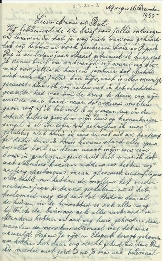 Brief Oma uit Nijmegen 16 december 1945, geschreven ...