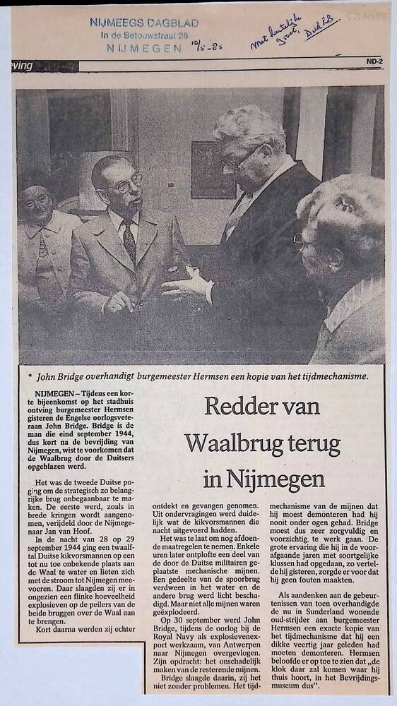 Knipsel 10-5-1985 over John Bridge