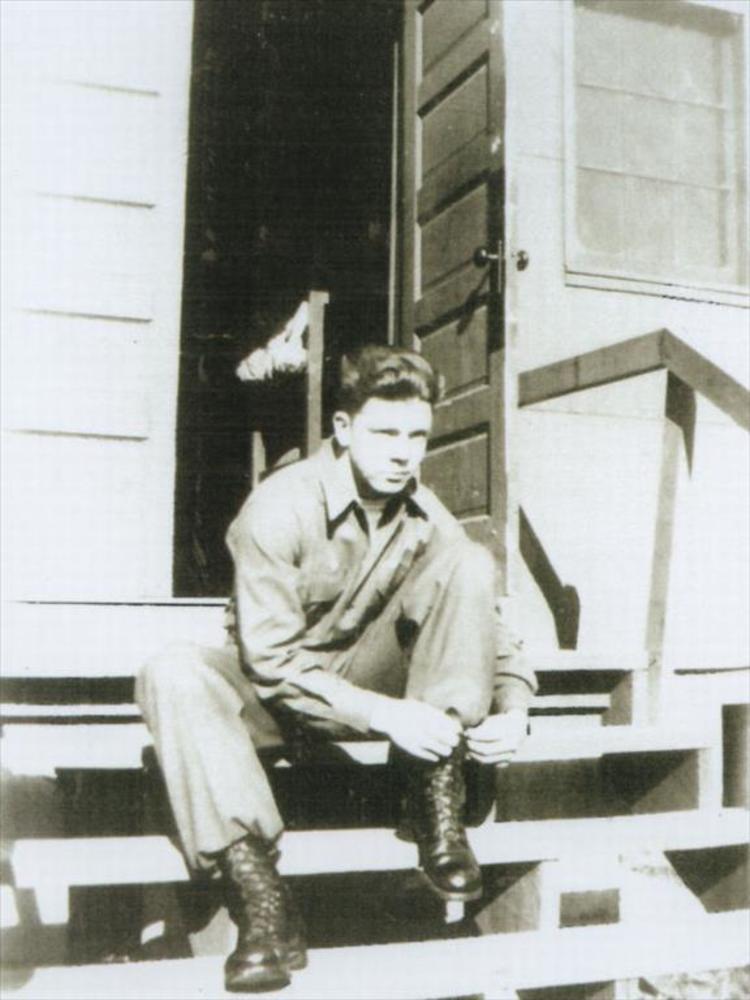 Amerikaanse militair die zijn springlaarzen strikt