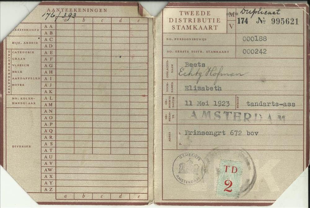 Tweede Distributiestamkaart van Elisabeth Beets, ech...