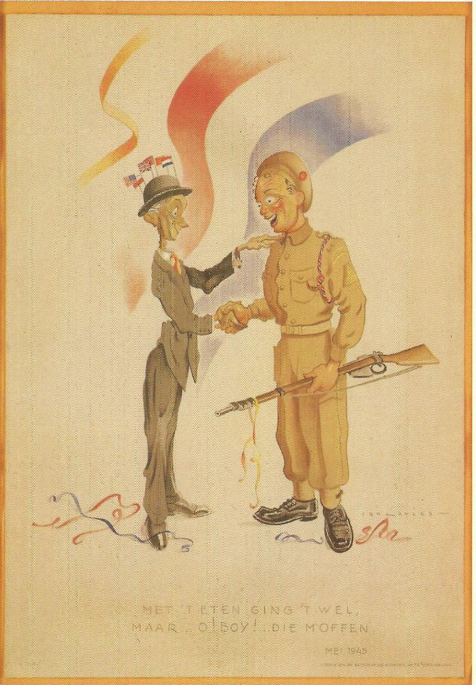 Greetings from liberated Holland man in militair uni...