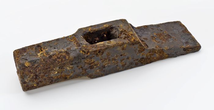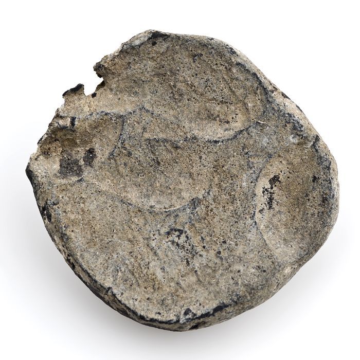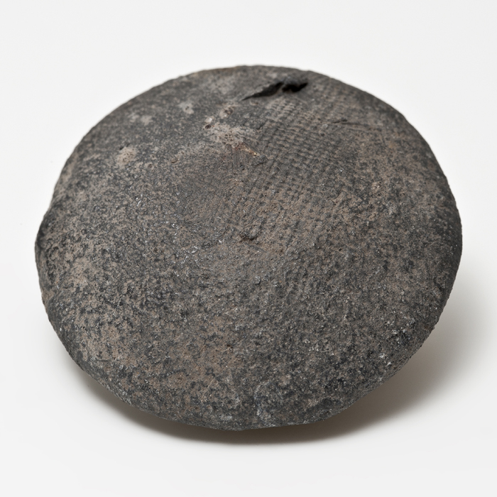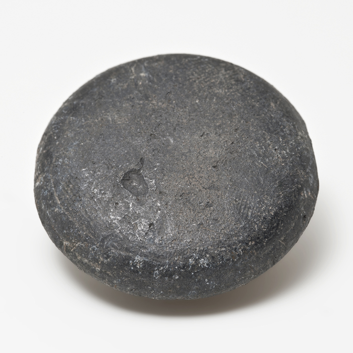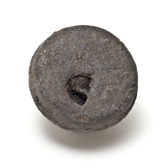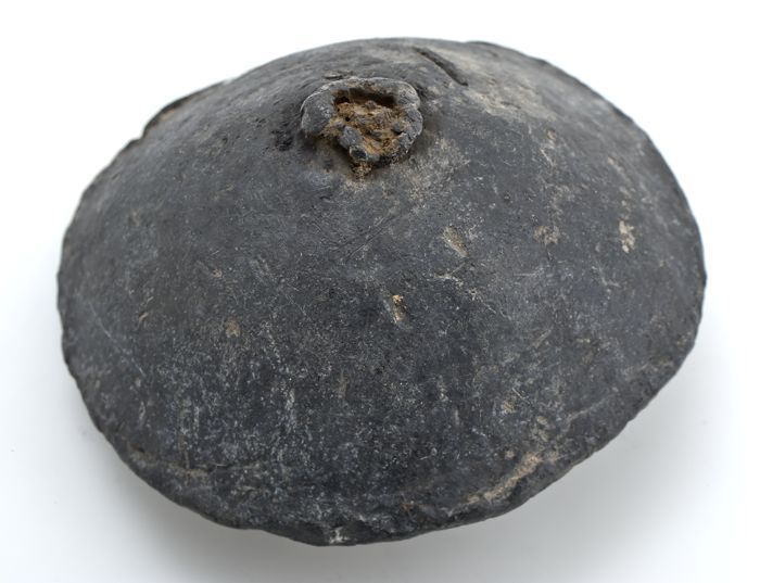 Grote loden schijf met bolle en platte zijde, ijzere...