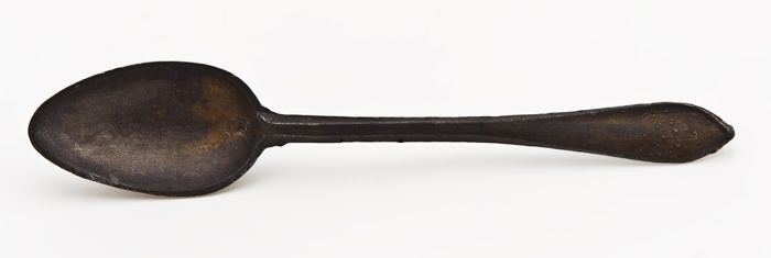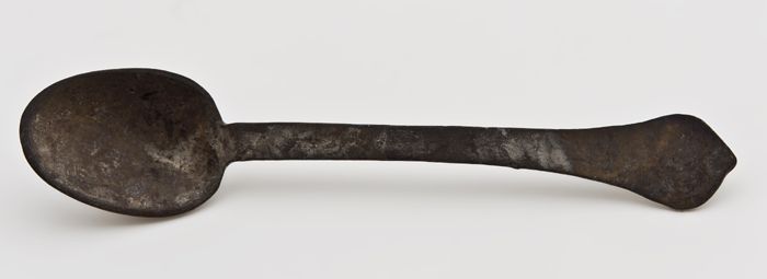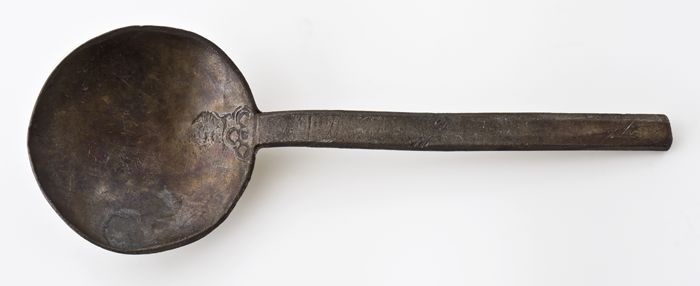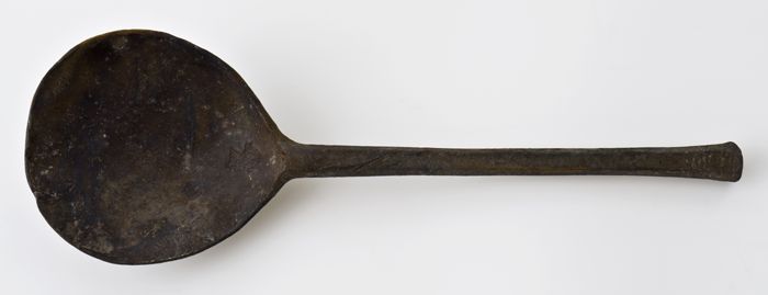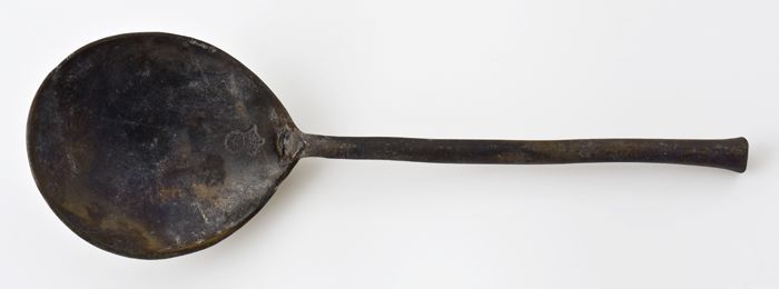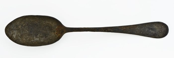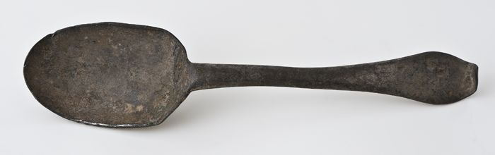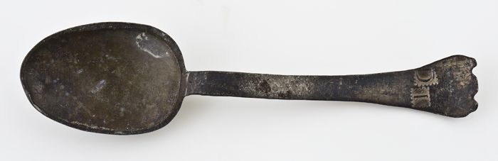 Tinnen lepel met ovale bak, rattenstaart met stuit, ...