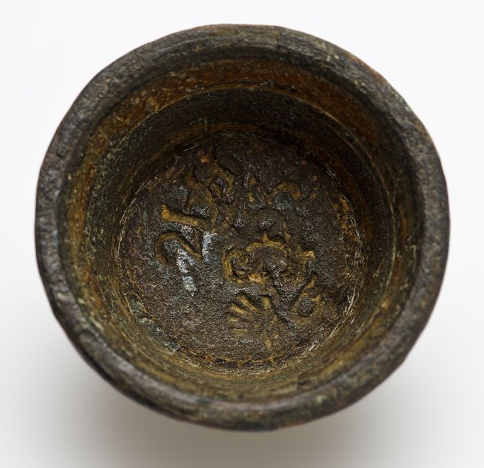 Koperen sluitgewicht, rond en conische bak