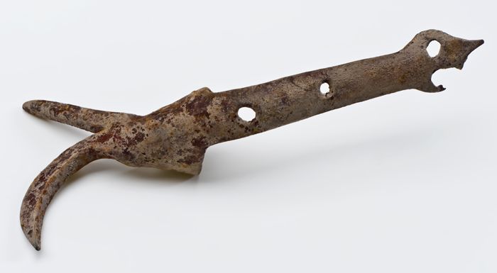 Riek ofwel grote drietandvork met gebogen tanden