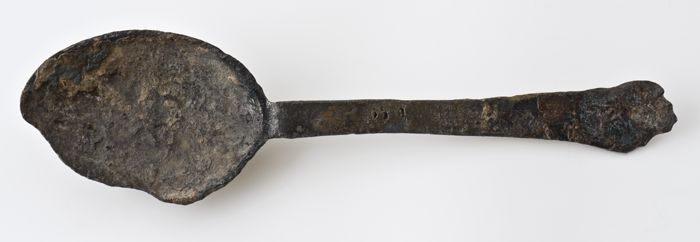 Lepel met langwerpige ovale bak en enigszins gebogen...