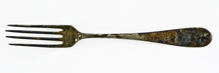 Vork met vier tanden en generfde steel met afgerond ...