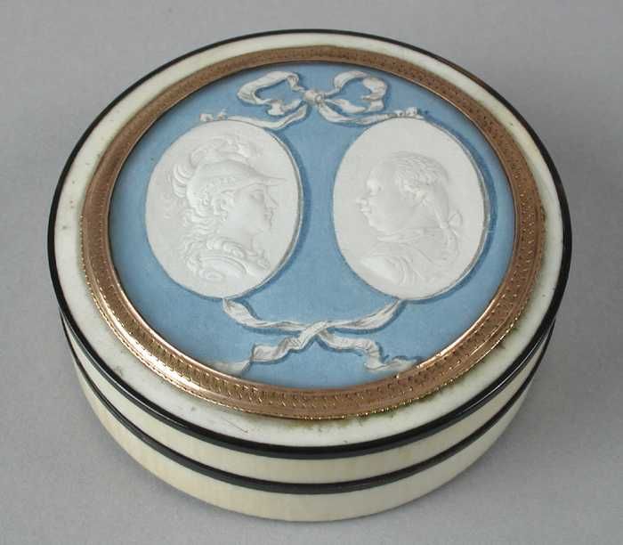 Ivoren snuifdoos met portretten in papierreliëf van ...