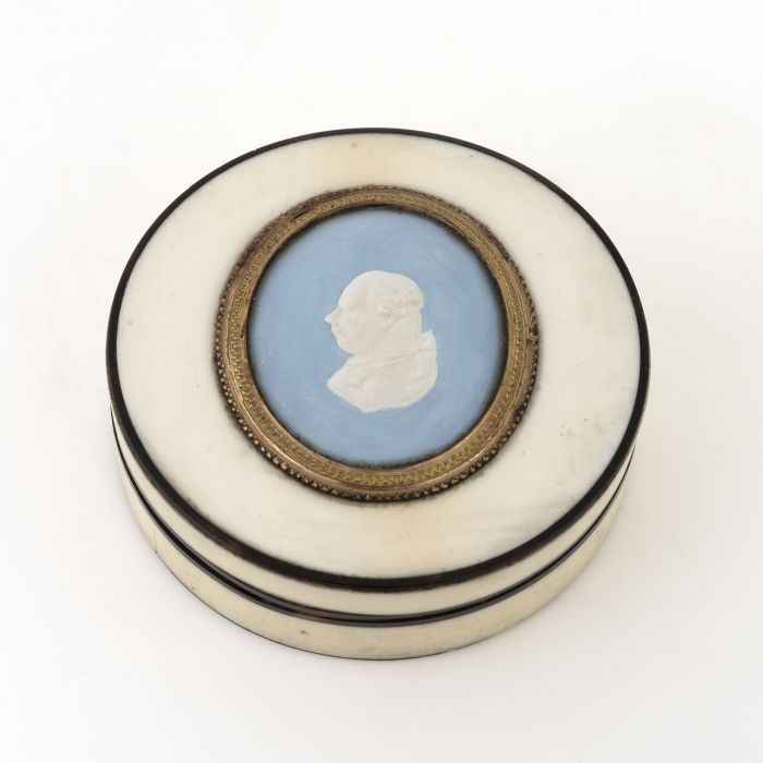 Ivoren snuifdoos met portret in papierreliëf van pri...