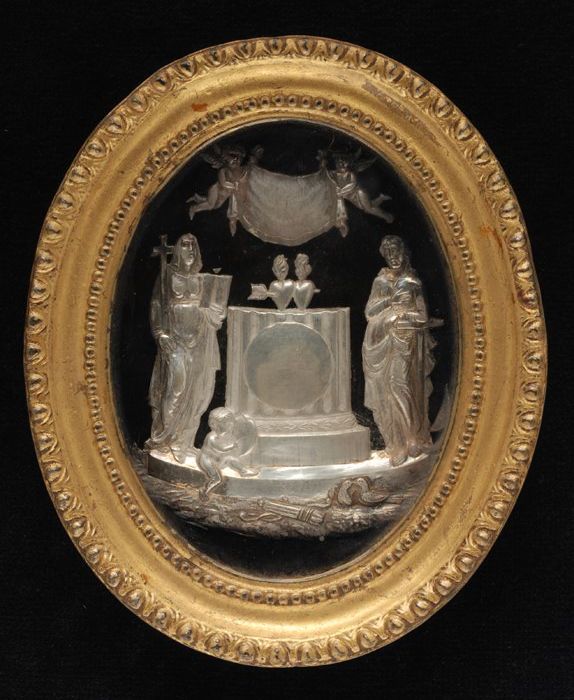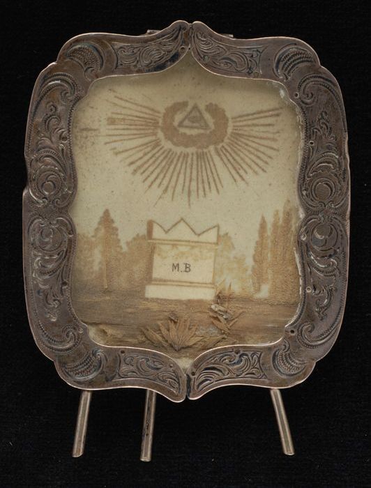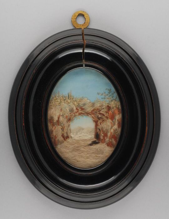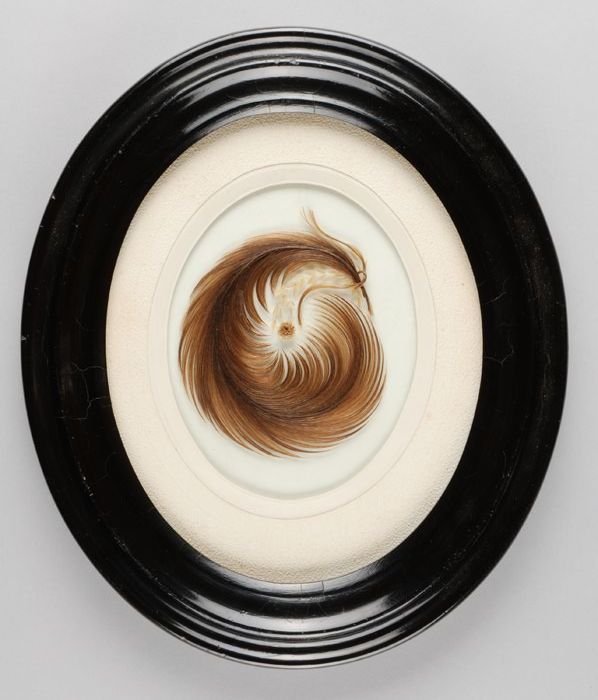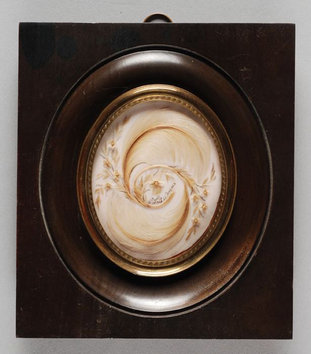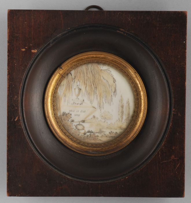 Haarschilderij, miniatuur ter herinnering aan de beg...