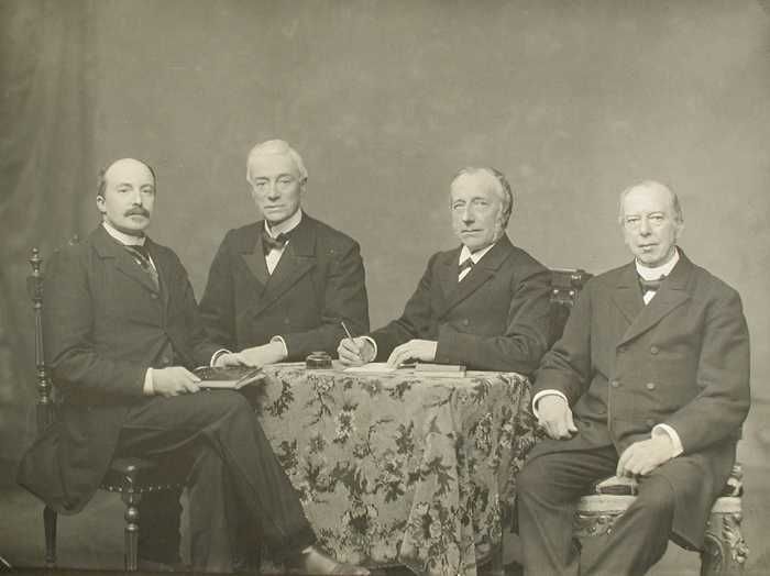 Portretfoto van vier regenten van het Gereformeerd O...