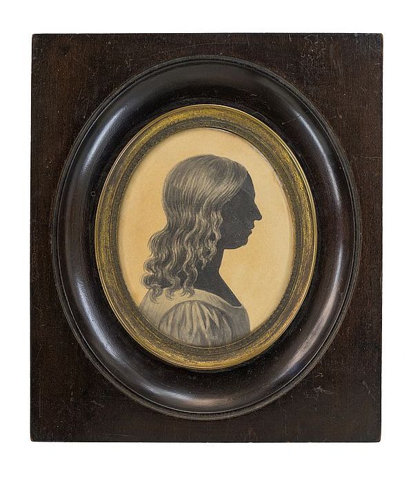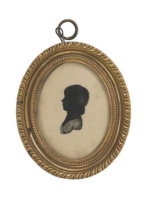 Silhouetportret van Mary Verbrugge naar rechts, met ...