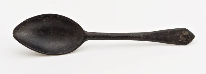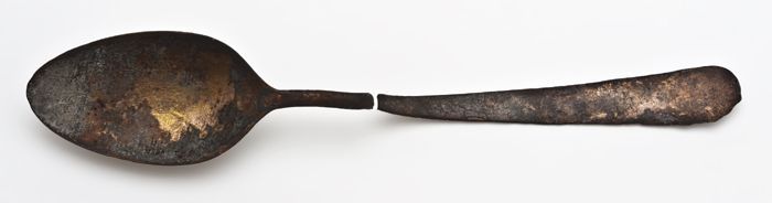 Lepel met langwerpige ovale bak (A), steel is afgebr...