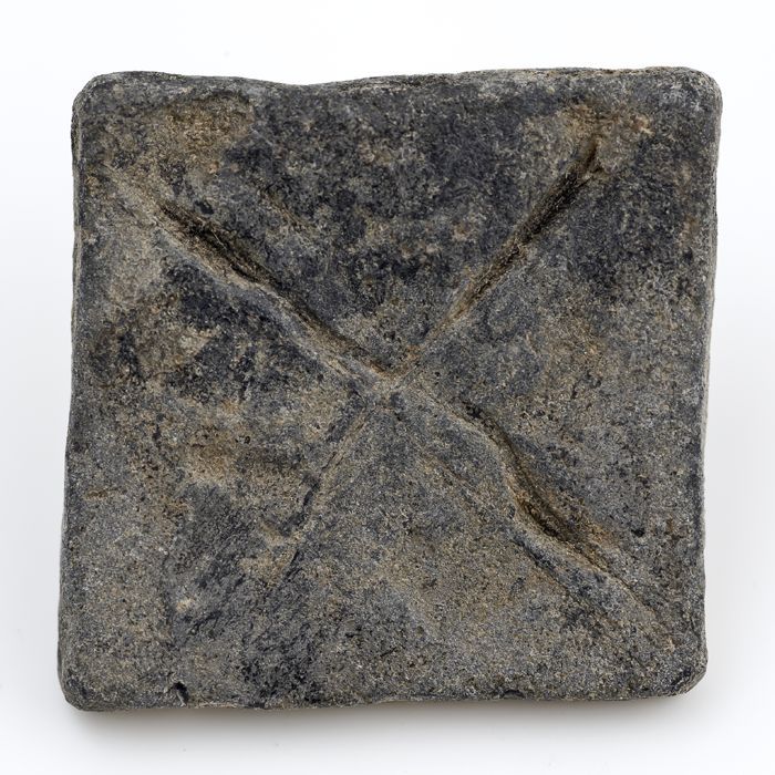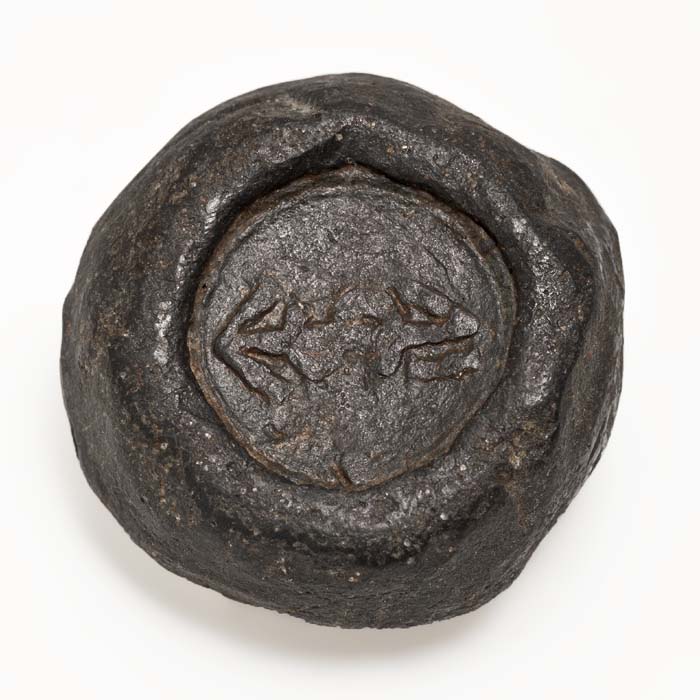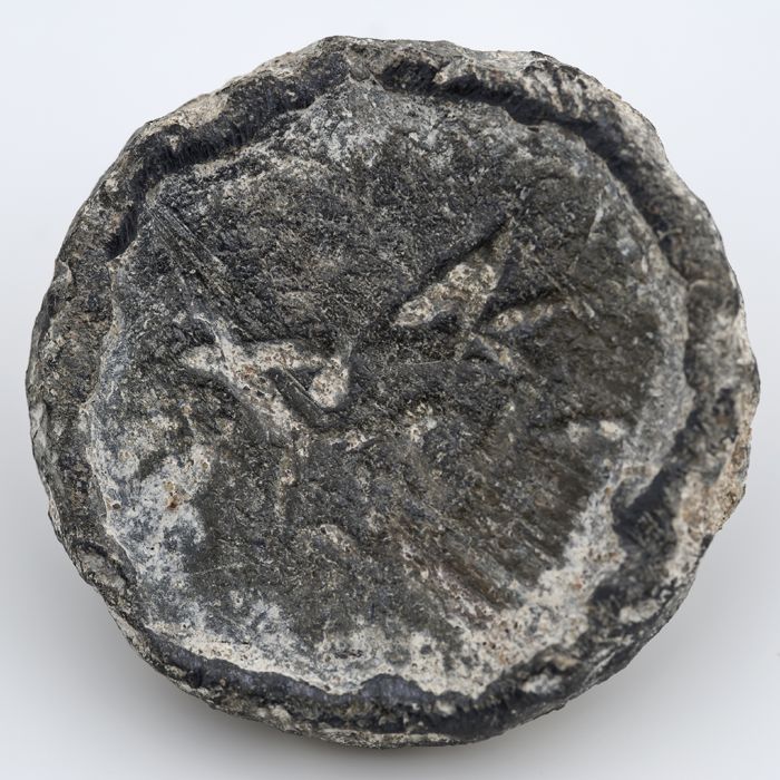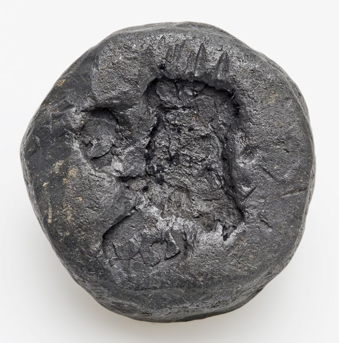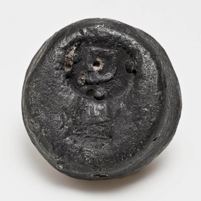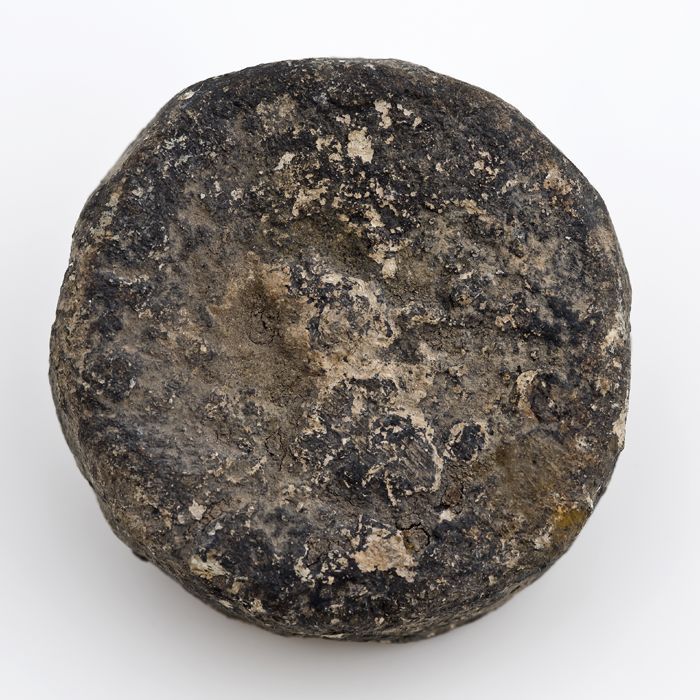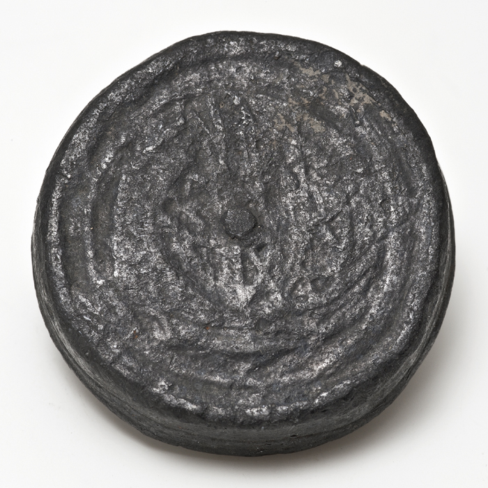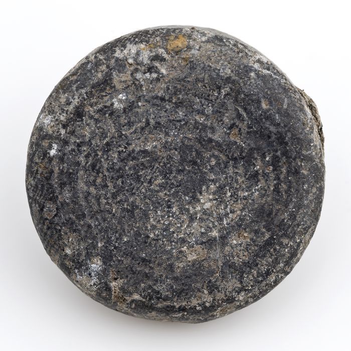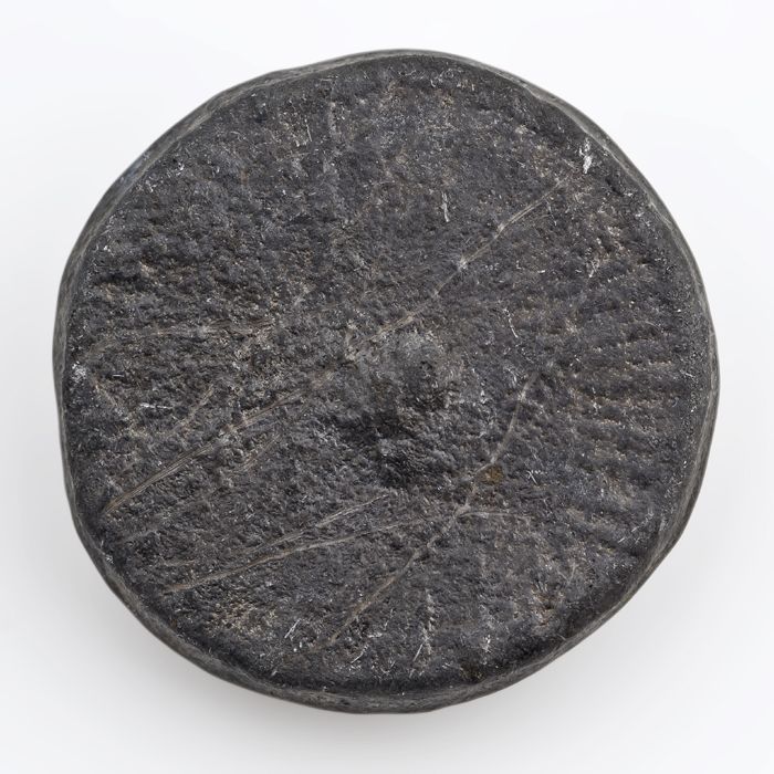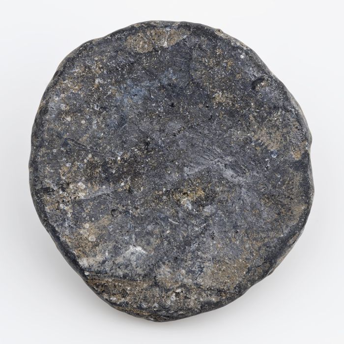 Schijfvormig loden gewicht met ingeslagen stempels