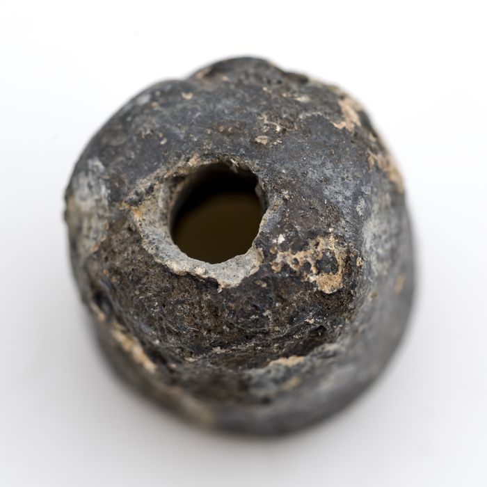 Achthoekig conisch loden gewicht met bronzen (?) ker...
