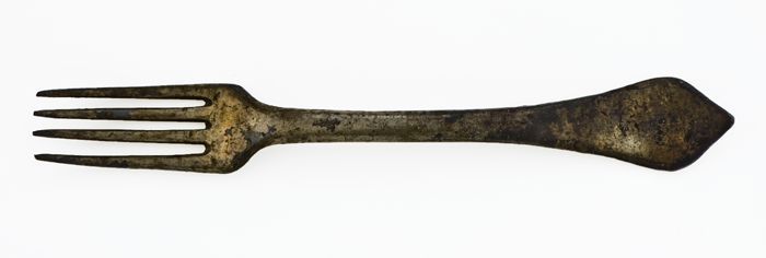 Vork met vier tanden en platte steel met ruitvormig ...