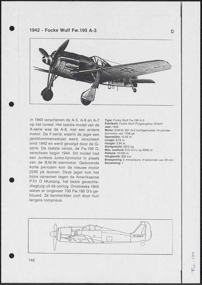 Korte beschrijving van het vliegtuig Focke Wulff Fw....