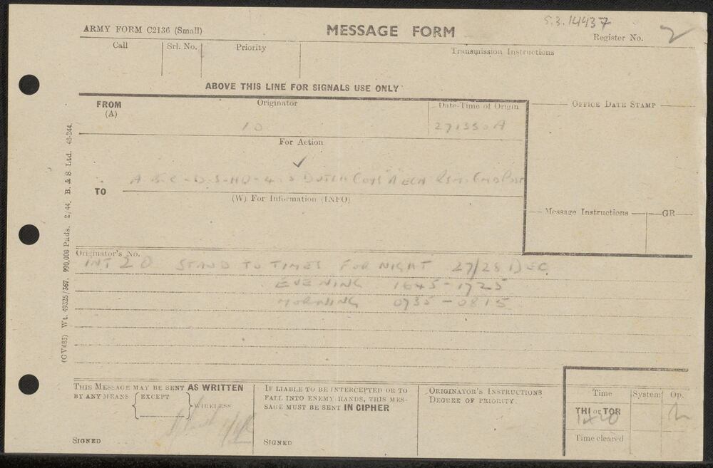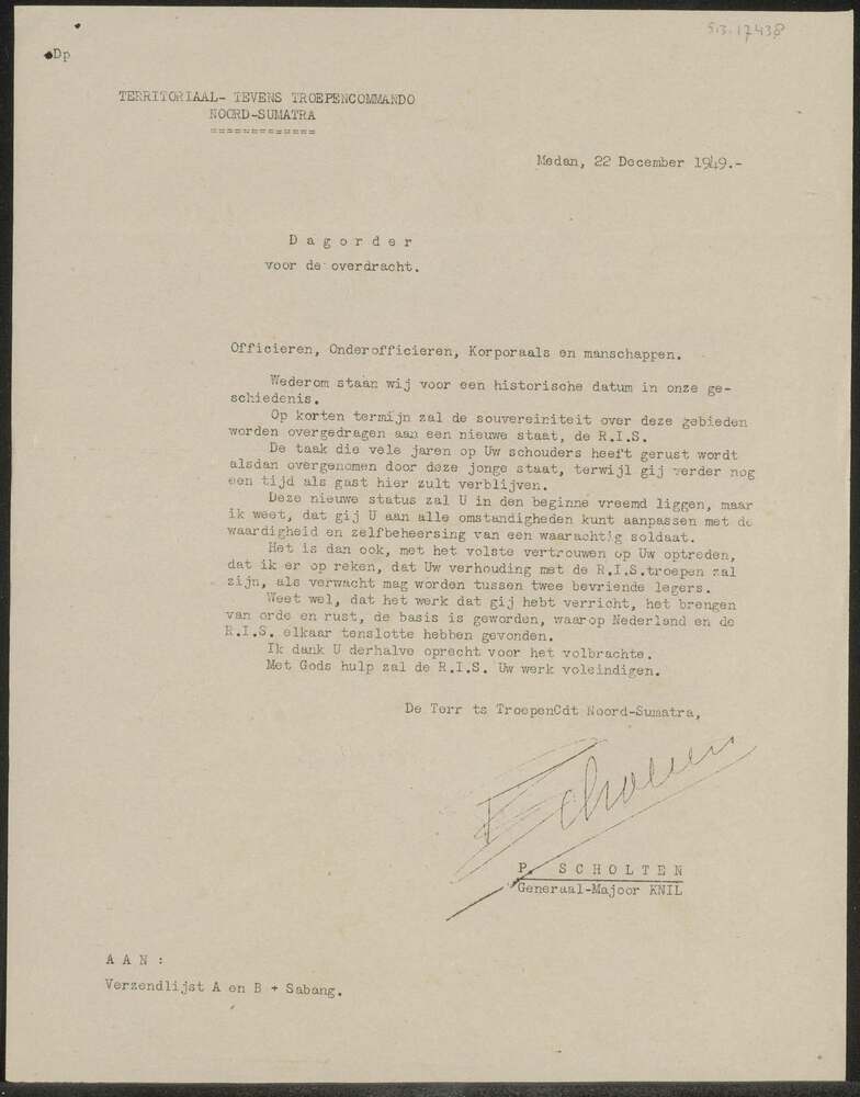 Bericht van I.O. aan A, B, C, D, S, HQ, 4 + 5 Dutch ...