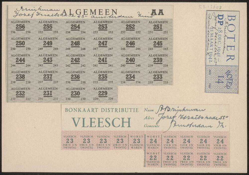 Kaart met bonkaarten op naam van Brinkman, Josef Isr...