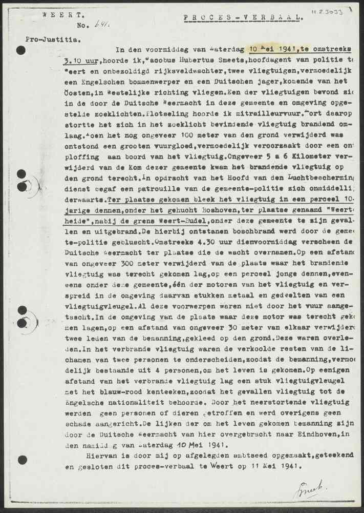 Proces-Verbaal Gemeente Weert i.v.m. neerstorten Eng...
