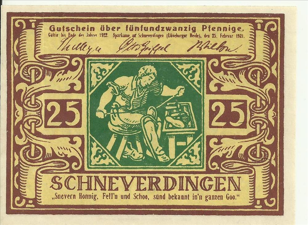 Noodgeld van de stad Schneverdingen, 25 penning, 1920