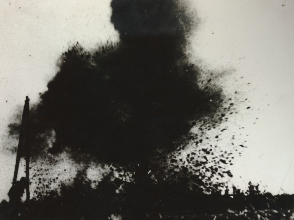 Exploderende granaat bj soldaat. Tekst achterop: "Bo...