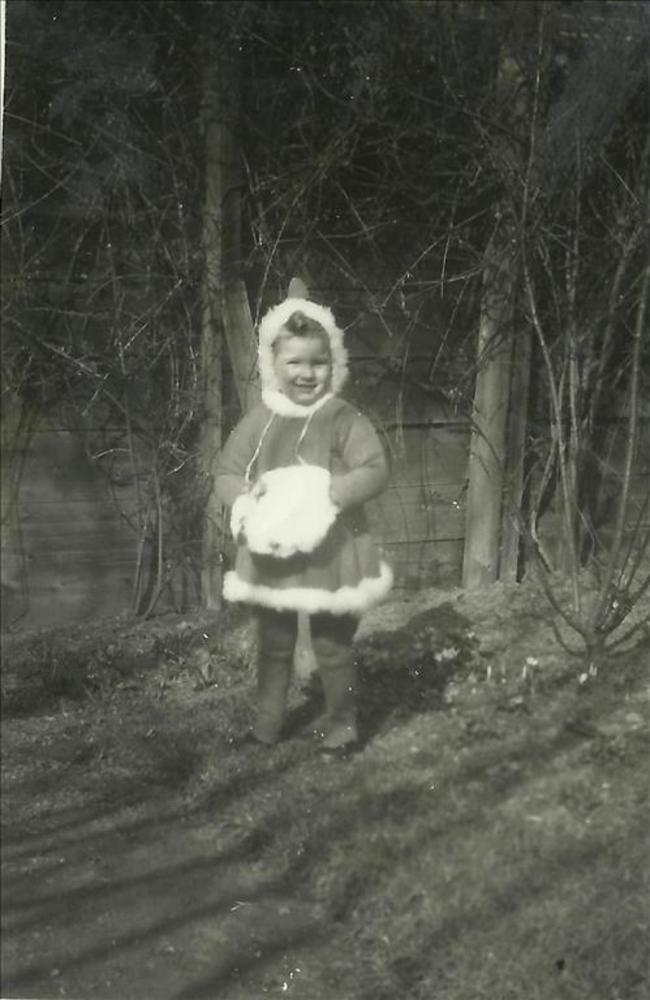 Joosten collectie: meisje, capuchon, bontomrand, mof