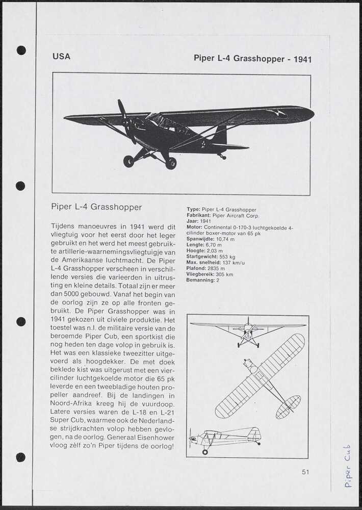 Korte beschrijving van het vliegtuig Piper L-4 Grass...