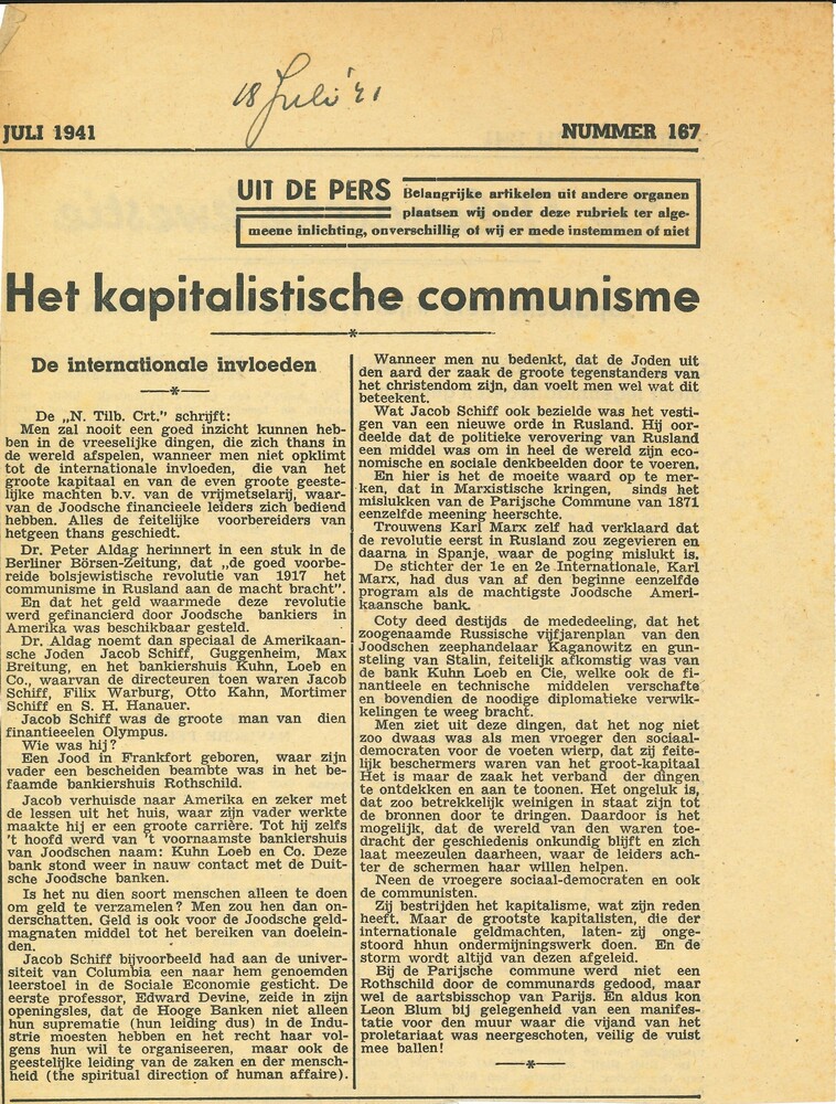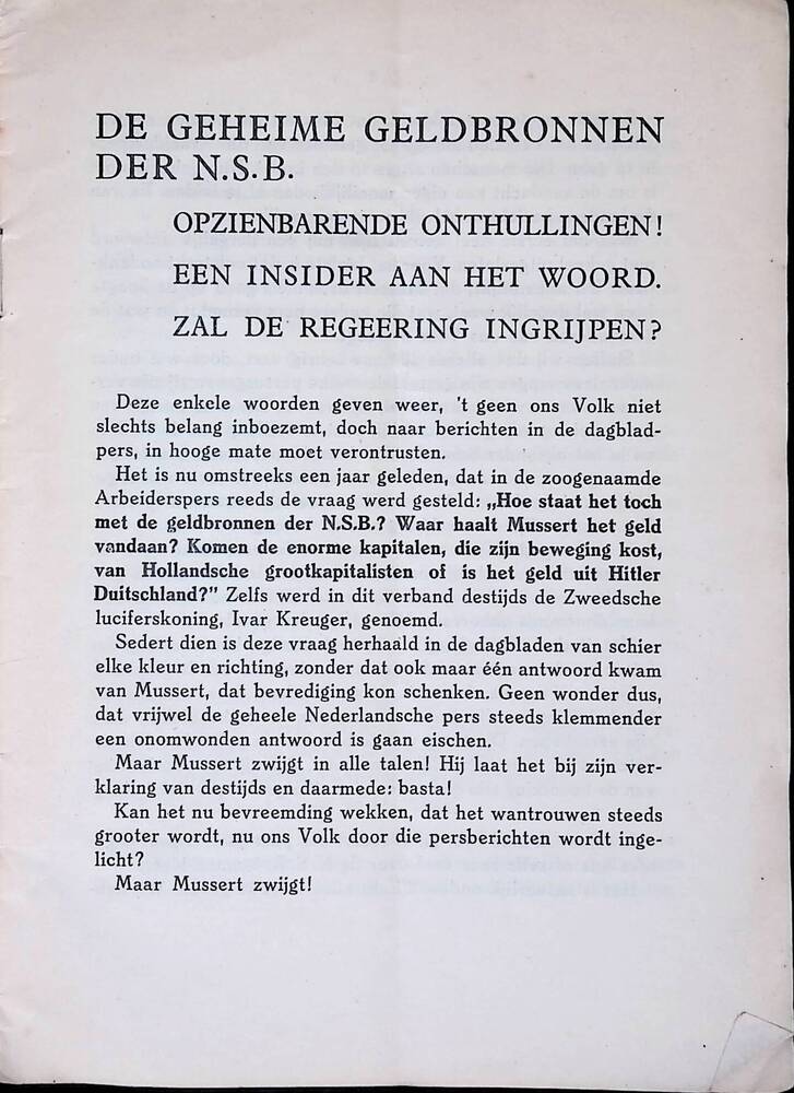 Brochure: De geheime geldbronnen der N.S.B. opzienba...