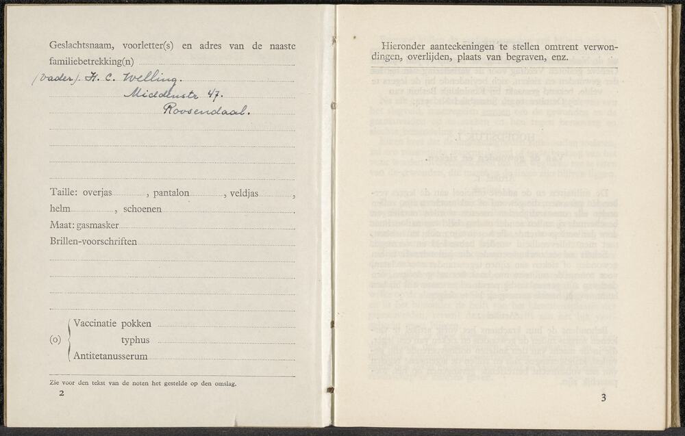 Oorlogszakboekje op naam van reserve 2e luitenant H....