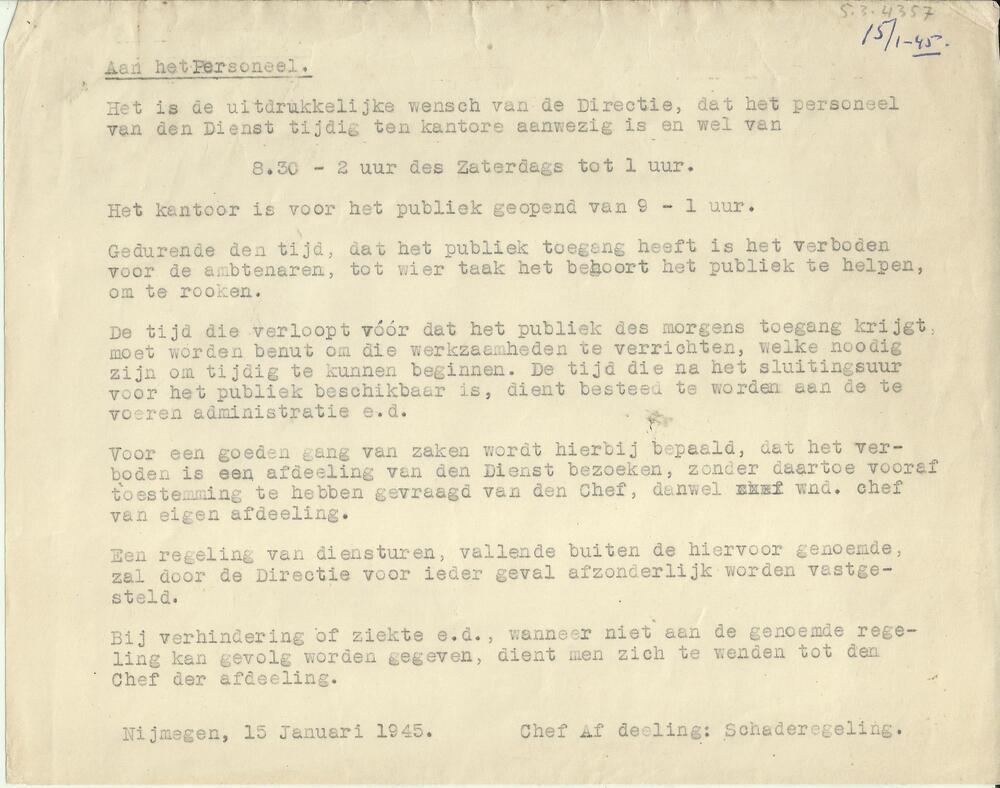 Luchtbeschermingsdienst Nijmegen 1939-1944 Getypte o...