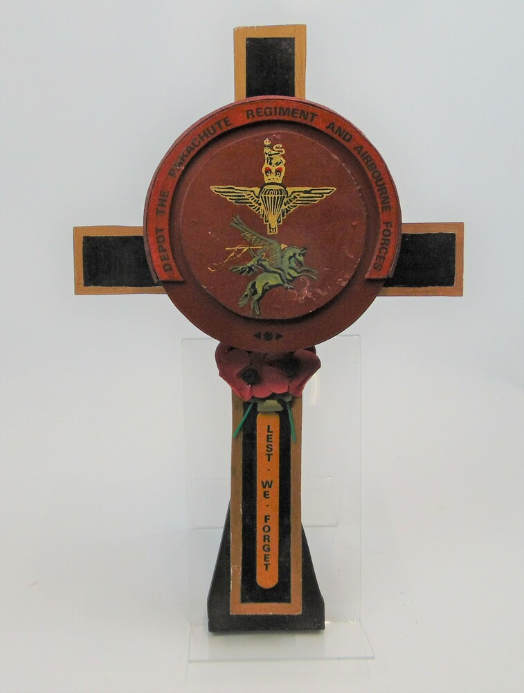 Houten kruis met daarop het embleem van Depot The Pa...