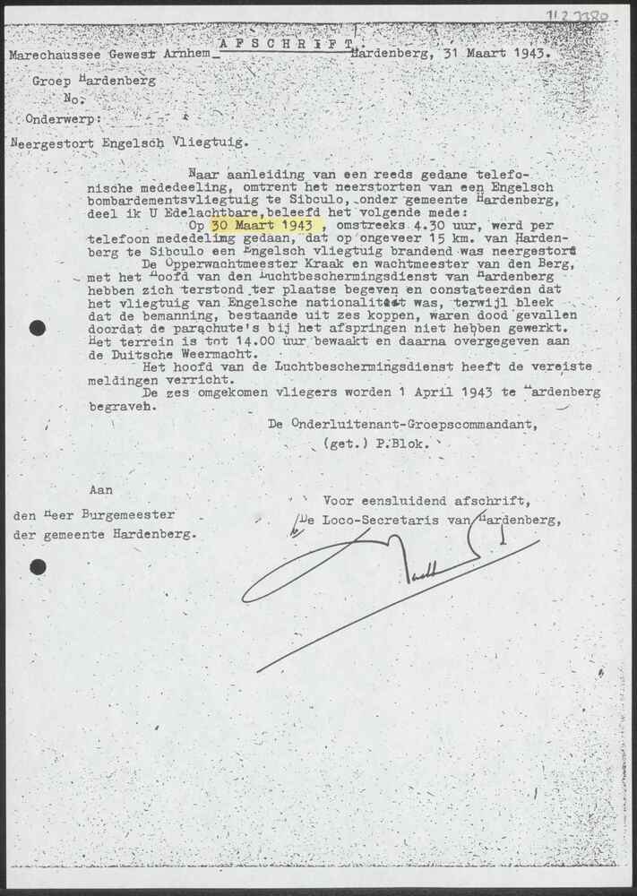 Rapport, Marechaussee Gewest Arnhem 31 maart 1943.