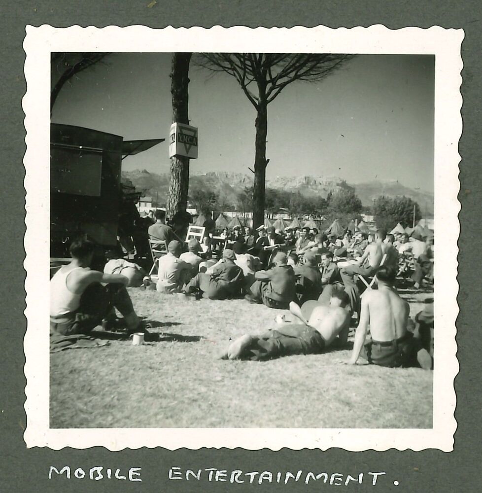 Fotoset Y.M.C.A. vermaak voor de troepen in Transit ...