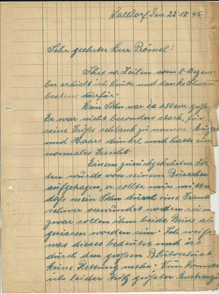 Brief aan het Landesamt Bienen 25 november 1945