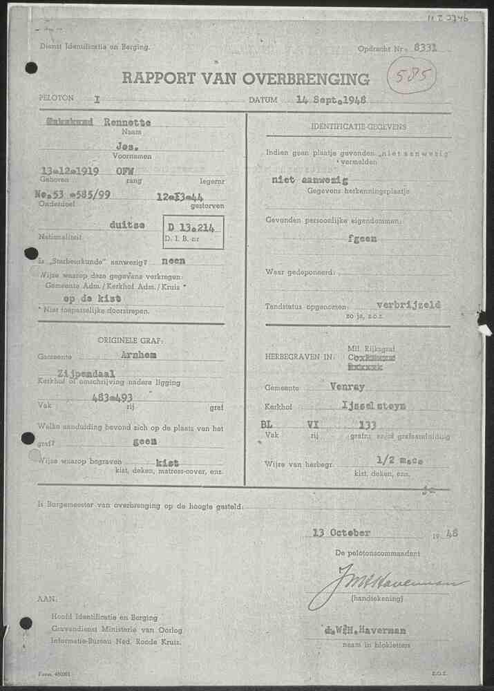 Overbrengingsrapport, Ofw Jos Rennette 13 oktober 1948.