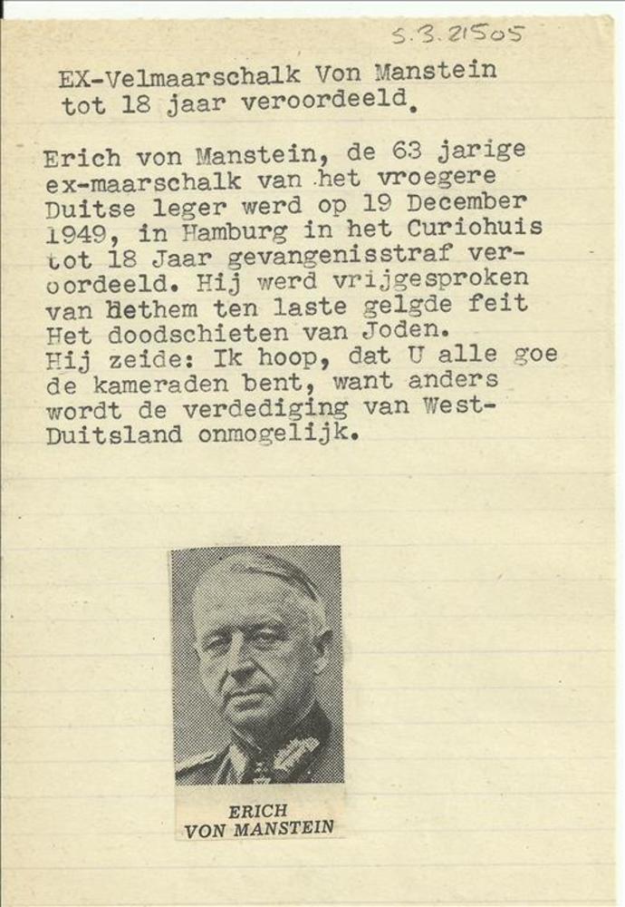tekstje over Ex-veldmaarschalk Von Manstein, tot 18 ...