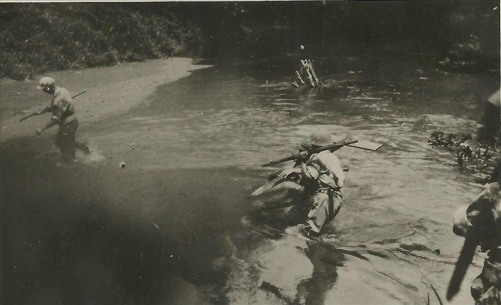 Ned. Indië na WO 2; militair, patrouille, kali, rivier