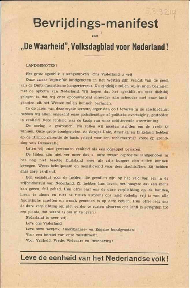De Waarheid ( verschillende edities ), Pamflet: Bevr...