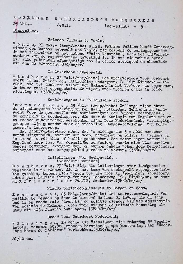 Algemeen Nederlandsch Persbureau, mededelingen, 24 m...