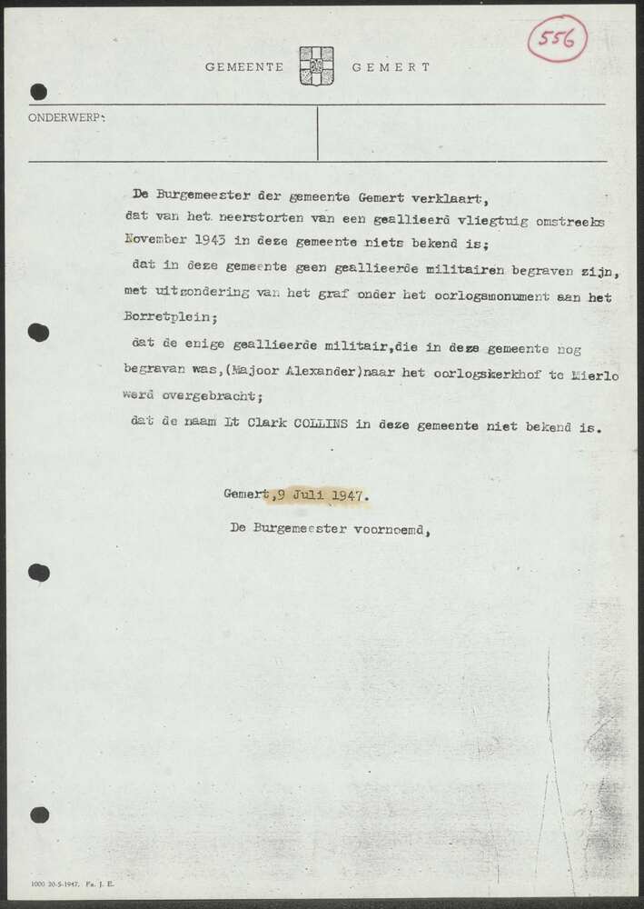 Brief in enveloppe. 17 november 1943. Aan den heer G...