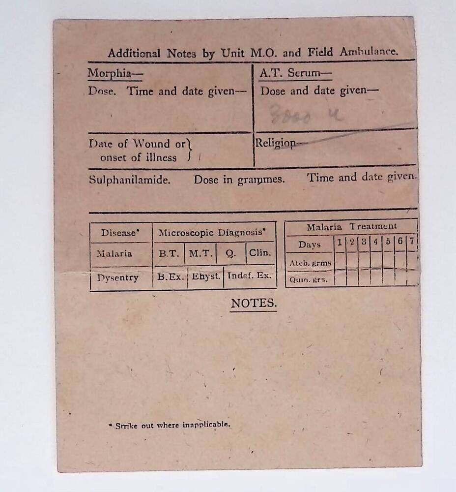 Ship Label, Diary of Transference, Field Medical Card.