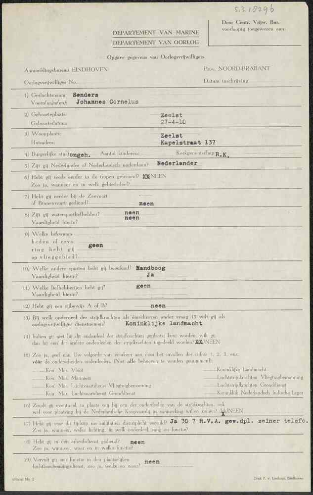 Aanmeldingsformulier oorlogsvrijwilliger Aanmeldings...