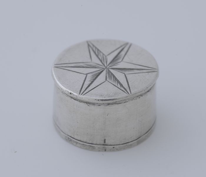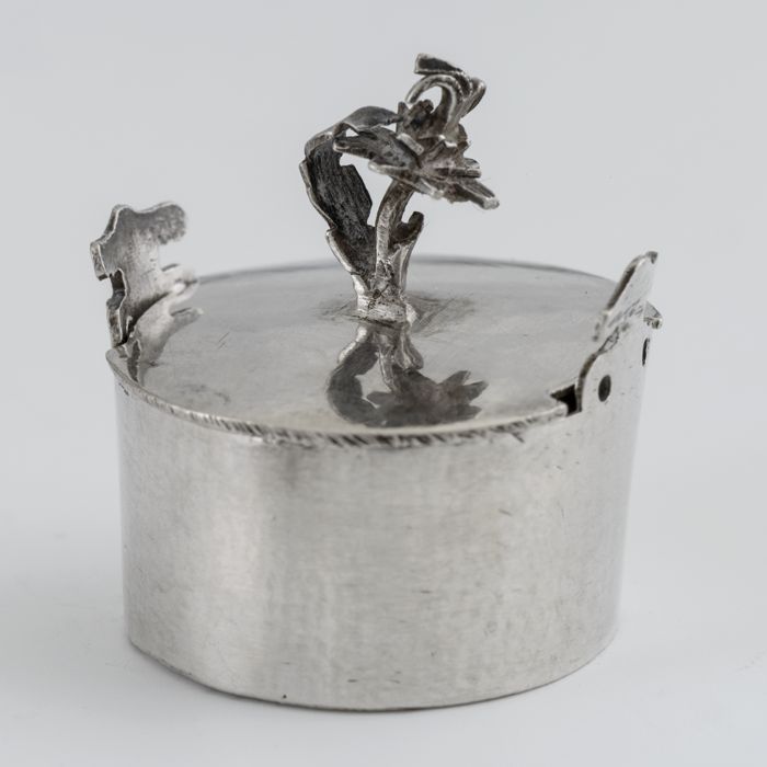 Zilveren ronde miniatuur botervloot met deksel