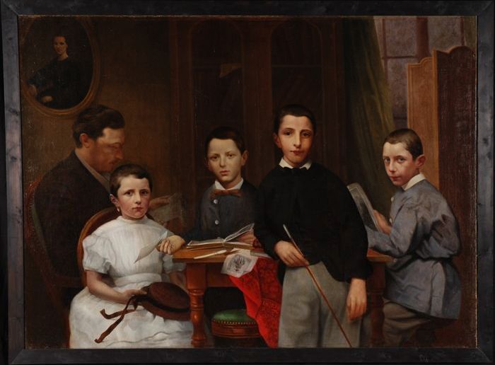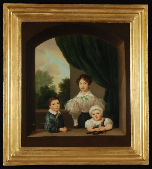 Portret van een vrouw en twee kinderen