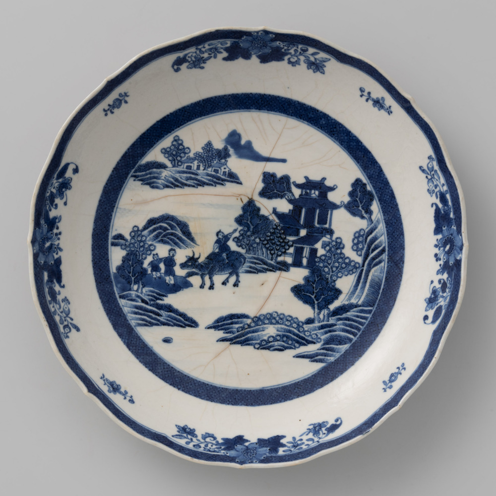 Ronde schaal, behorende tot een Chinees, blauw eetse...